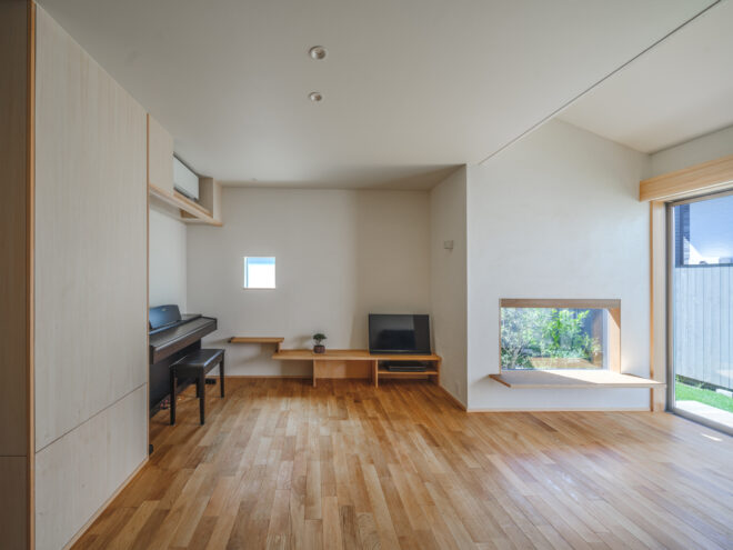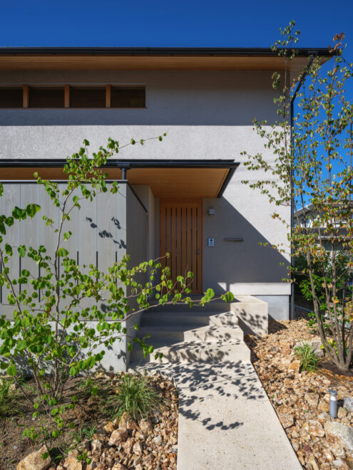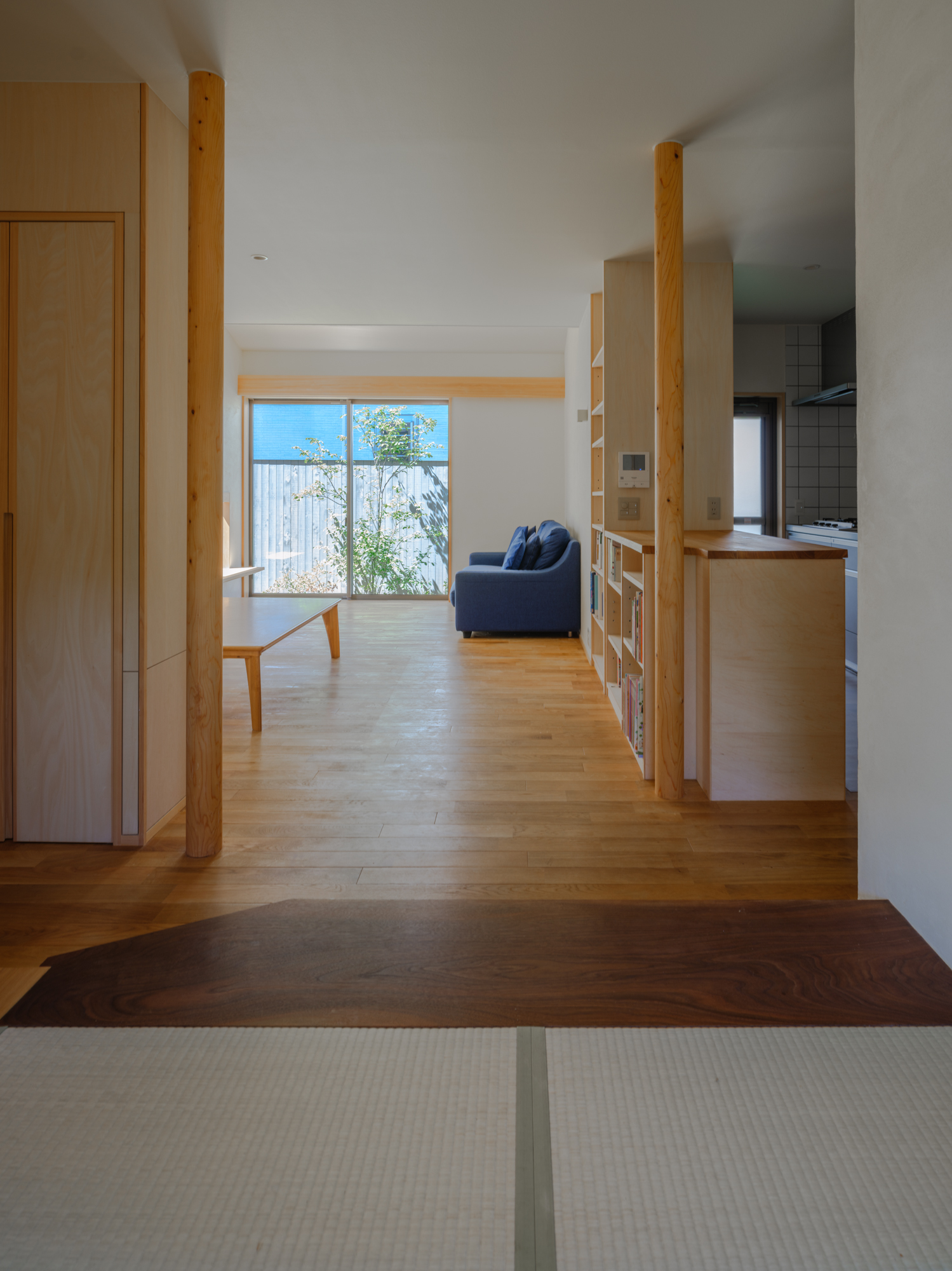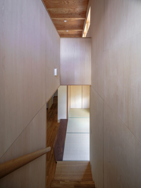 Posted on 9月 1, 202412月 13, 2025 by norimatsu-arch西登美ケ丘の家 -小さな北東向きの家- 北東向きの土地に導かれたプラン朝日の当たる道路面に、坪庭を配した坪庭に接するは部屋名のない畳スペースお子さんの成長と共に暮らし方も変化する5人家族の住まいある日の夕方、坪庭のスリットから漏れる灯り通りに幸せがこぼれおちているように思えた 所在地 奈良県奈良市 構造 木造 敷地面積 217.85㎡ 延床面積 102.35㎡ 竣工 2024年 施工 寧楽工舍 撮影 松村芳治